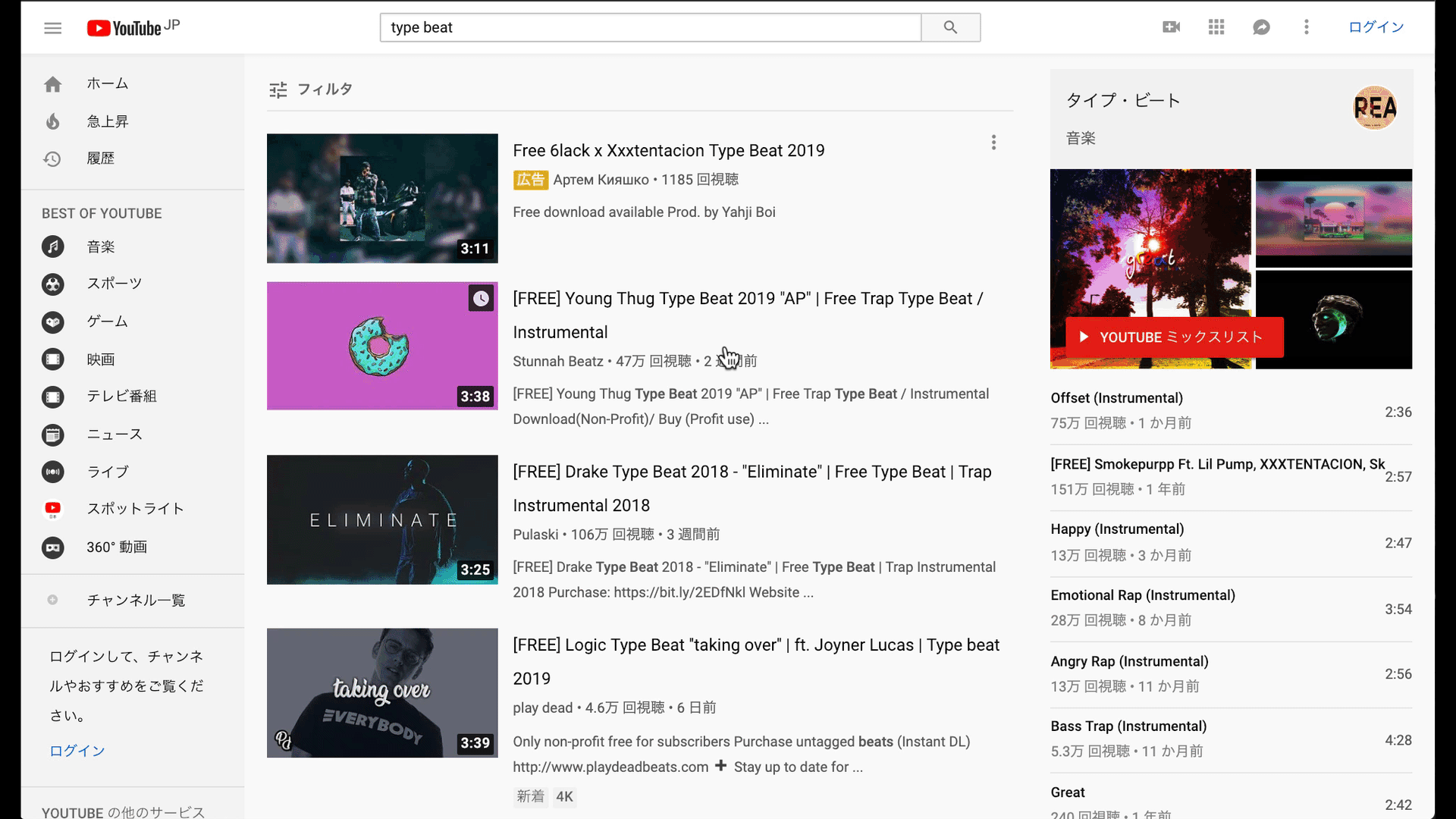 もしも、Chance The Rapperがラップしそうなトラックが欲しい場合は「Chance The Rapper Type Beat」とYouTubeで検索してビートを探すわけです。